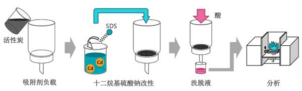 圖1:使用十二烷基硫酸鈉改性的活性炭進(jìn)行鎘預(yù)濃縮的實驗程序。