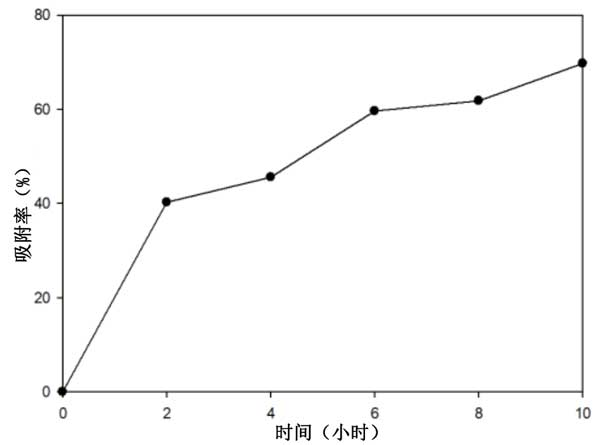 接觸時間和吸附百分比之間的關(guān)系如圖2所示。在該實驗中,鋅離子溶液為65ppm,活性炭用量為0.5g,并在搖床中以220rpm的速度進(jìn)行攪拌。接觸時間2-10小時,對鋅離子的吸附增加(40.26-70%)。