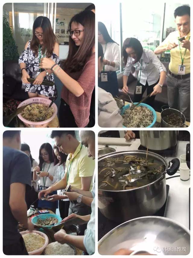 悠悠粽子香, 濃濃端午情,專注于活性炭的韓研人一個(gè)個(gè)爭(zhēng)先恐后地大顯身手,真別說(shuō),包粽子還真是一門(mén)技術(shù)活,男同胞和女同胞們進(jìn)行對(duì)抗PK賽,幾乎勢(shì)均力敵,但最后還是讓心靈手巧的女同胞們奪了冠。