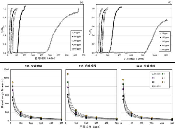 甲苯濃度對突破時(shí)間的影響