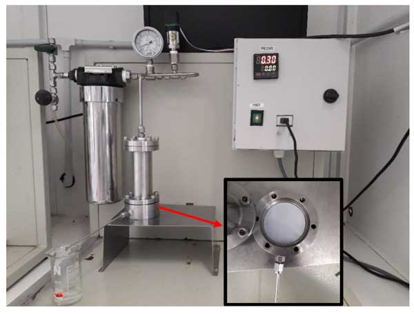 為了生產(chǎn)聚合物膜,聚偏二氟乙烯和1-甲基-2-吡咯烷酮分別用作聚合物和溶劑。圖1展示了用于制備涂料的過程。最初,聚合物PVDF使用加熱套在60至70℃的溫度范圍內(nèi)完全溶解在1-甲基-2-吡咯烷酮溶劑中(圖1a)。為了獲得更好的合成膜滲透通量,加熱套溫度應(yīng)始終保持在上述范圍內(nèi)。然后將涂料溶液注入干凈的瓶中,再將所需量的粉末活性炭添加到原液中以生成用于混合膜的原液。最后,將裝有涂料溶液的玻璃瓶放入超聲波儀中8小時(shí),以確認(rèn)添加劑的均勻混合,在制備的涂料中沒有產(chǎn)生任何氣泡。制膜過程使用甲半自動膜澆鑄機(jī)施加到合成使用干-濕相處理的平片膜。