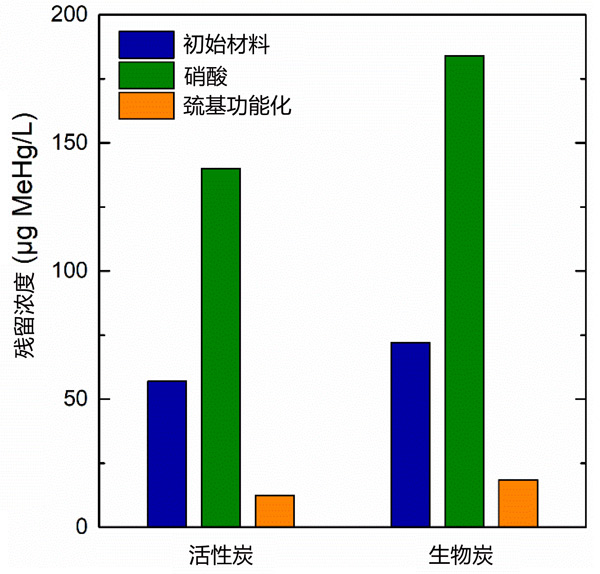 汞被對生物體具有高毒性,用于處理汞或甲基汞污染的水的方法不多,比如有吸附、混凝、過濾和生物過程。然而,到目前為止,只有吸附法在處理用于飲用的水時是比較可靠的。在接觸中與水相有關的主要形式是甲基汞,本次我們使用兩種碳基吸附材料,即活性炭和用來對照的生物炭,通過在其表面引入硫醇活性基團進行改性,以ppb濃度水平從類天然水中去除甲基汞。