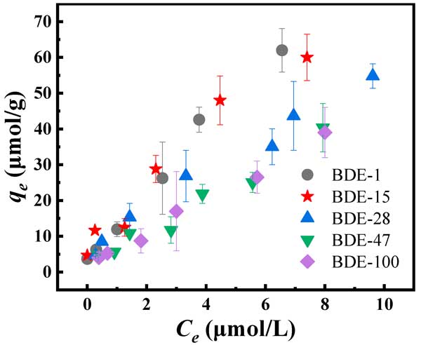圖2:活性炭對(duì)不同濃度PBDEs的吸附。