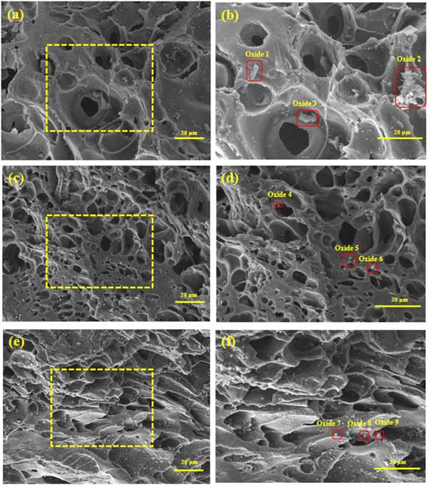圖1顯示了活性炭載錳催化劑的表面微觀結(jié)構(gòu)。在圖1a和b中,活性炭載錳5催化劑表面孔隙分布不均勻,周圍有少量顆粒。當(dāng)Mn負(fù)載量為5%時,可以在催化劑指示的塊狀附著物中檢測到少量Mn。這表明催化劑成功負(fù)載Mn,但是,它的含量很低。圖1(c)和(d)中,活性炭載錳7催化劑表面光滑,孔結(jié)構(gòu)發(fā)達(dá),孔道明顯增加,表面顆粒分布均勻。這有助于催化劑吸附氣體�;钚蕴枯d錳7催化劑成功負(fù)載了中等含量的Mn元素,可以很好地改性活性炭。這些發(fā)現(xiàn)與圖3中脫硝曲線的結(jié)果一致。在圖1e和f中,活性炭載錳9催化劑表面粗糙,大小不一的孔隙分布不均勻,顆粒在表面局部堆積。這些因素堵塞了氣孔,抑制了脫硝。當(dāng)Mn負(fù)載量為9%時,在催化劑表面檢測到大量附著物。高M(jìn)n含量表明Mn的過量負(fù)載可能導(dǎo)致催化劑表面21上的孔隙積累和堵塞(圖1e和f)。這可能是NO轉(zhuǎn)化率因負(fù)載過大而降低的原因之一。
