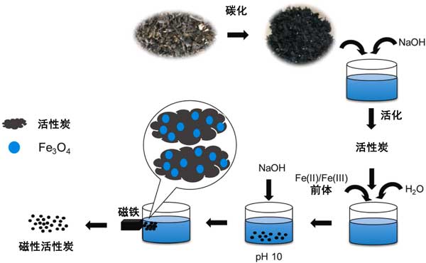圖1:磁化活性炭制造方案。