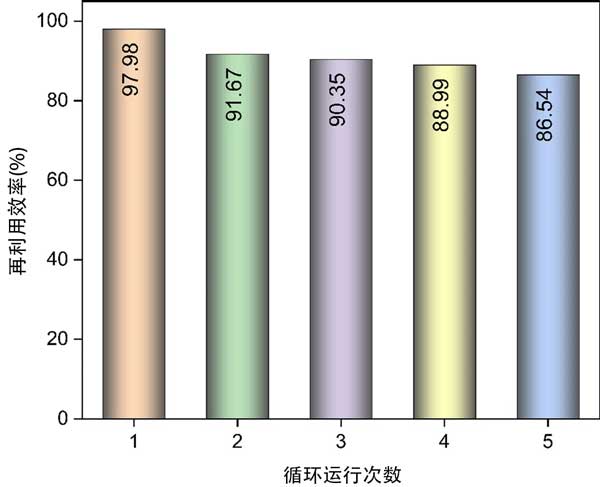 吸附劑的可重復(fù)使用性和吸附穩(wěn)定性在評(píng)估所開發(fā)方法的實(shí)際適用性方面起著至關(guān)重要的作用。事實(shí)上,吸附劑的可重復(fù)使用性能是實(shí)際應(yīng)用的首要標(biāo)準(zhǔn),并影響吸附過程的總體成本�;钚蕴勘秸羝降脑倮眯适窃谖鍌(gè)連續(xù)的回收循環(huán)后確定的。如圖4所示,經(jīng)過五次連續(xù)回收過程后,活性炭苯蒸氣的再利用效率為86.54%。強(qiáng)大的可重復(fù)使用性和吸附穩(wěn)定性表明活性炭吸附劑和苯吸附物之間存在范德華力或π-π相互作用。相反,不完全的再生過程可歸因于吸附表面上永久鍵的形成,導(dǎo)致吸附基團(tuán)的不可逆轉(zhuǎn)化。換句話說,一些在再生過程中未解吸的化學(xué)結(jié)合吸附物可能會(huì)堵塞孔隙,導(dǎo)致殘留物形成。
