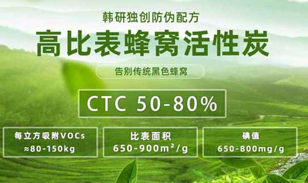 比表面積是指單位質(zhì)量活性炭所具有的表面積。它是衡量活性炭吸附性能的重要指標(biāo)之一。比表面積越大,活性炭的吸附能力越強(qiáng),因?yàn)樗軌蛱峁└嗟谋砻娣e來吸附有害氣體或異味分子。一般來說,韓研的活性炭的比表面積可以達(dá)到900㎡/g以上,而普通活性炭的比表面積可能在100~600㎡/g之間。此外,除了比表面積之外,還需要關(guān)注其他參數(shù)指標(biāo)如孔徑分布、孔容率等等。這些參數(shù)也會(huì)影響活性炭的吸附效果。只有選擇了適合自己需求的活性炭才能更好地發(fā)揮其吸附作用。因此,在選擇氣體處理活性炭時(shí)需要綜合考慮多個(gè)因素,如CTC值、比表面積、機(jī)械強(qiáng)度等等。只有選擇了適合自己需求的活性炭才能更好地發(fā)揮其吸附作用。
