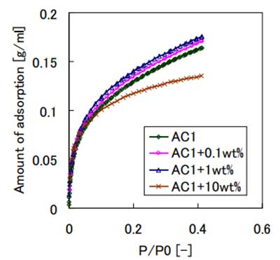 活性炭在0.4的相對壓力下。 當它是1wt%時,正丁烷的吸附量增加了最多是原料碳的1.11倍。 當它為10wt%時,正丁烷的吸附量減少比原始碳高出7%。根據(jù)上述結(jié)果,當硅酸鈉溶液的條件是0.1和1wt%分別可以說,正丁烷對二氧化硅浸漬碳的吸附性能較大比法碳。