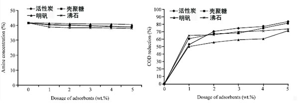 該單乙醇胺廢水含有許多類型的分子和離子。因此,某些分子和離子基于其特性被吸附到這些吸附劑表面上�;钚蕴烤哂惺杷砻�,有利于空氣中的有機物。同時沸石是親水性吸附劑。吸附劑的這些特性有助于降低COD水平。從結(jié)果可以看出,與活性炭和沸石相比,活性炭是降低COD水平的效果好的吸附劑。