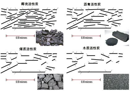 圖1.顯示其相關(guān)孔結(jié)構(gòu)的不同類型活性炭的一般示意圖。