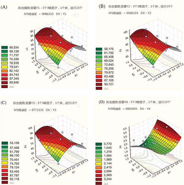 圖1示出了一組測定的實驗條件(表示為編碼變量)和因變量所獲得的實驗數(shù)據(jù)y1-y4,以及有關(guān)廢水的顏色化合物的參數(shù),與活性炭處理前的參數(shù)。