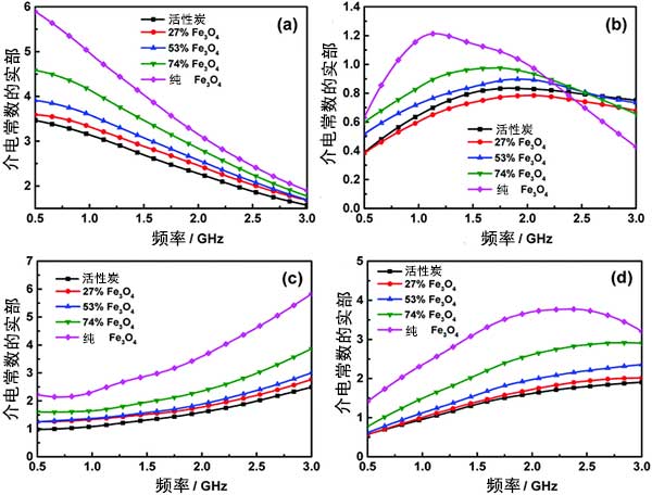 此外,研究了活性炭復合材料的電磁波吸收性能。圖4顯示復介電常數(shù)和導磁率,這些電磁參數(shù)對于確定微波吸收復合材料的介電和磁損耗非常重要,并且在吸收過程中電磁波的傳輸和反射也受它們的影響。從圖6(a)和(b)中,可以觀察到,所有樣品的介電常數(shù)的實部與增加頻率。圖6(c)和(d)顯示了磁導率的實部和虛部作為頻率的函數(shù)。觀察到當活性炭的負載量低時,滲透率的實部僅略微增加。
