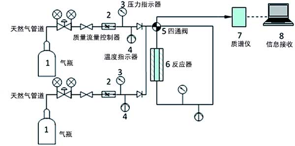 在我們之前的工作中開發(fā)了吸附裝置來測量氣體穿透曲線(圖1)。它由三個(gè)主要部分組成:準(zhǔn)備部分、吸附段和分析部分。在氣體制備部分中,吹掃氣體是高純度Ar氣體(99.999%),其用于在引入烴氣體之前通過惰性氣體管線和反應(yīng)器吹掃系統(tǒng)。吸附部分使用丙烷或乙烷在氦氣或人造氣體混合物,其通過燃料氣體管線和反應(yīng)器。這兩條線都碰到了一個(gè)四端口交叉閥。整個(gè)裝置等溫(~26℃)。閥門位置,氣體流量,壓力和溫度完全自動化,并由內(nèi)部程序控制。通過質(zhì)譜儀分析和量化來自反應(yīng)器出口的氣體。