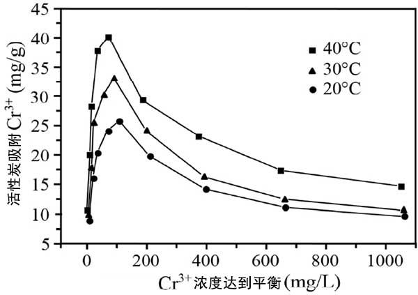 2、已經(jīng)確定,活性炭在20、30和40℃下的鉻吸附等溫線具有取決于平衡濃度的不規(guī)則形狀。三條曲線顯示出類似的趨勢,陽離子攝取量的初始增加非�?�。達(dá)到最大值后,隨著平衡溶液中鞣劑含量的增加,它們明顯降低。