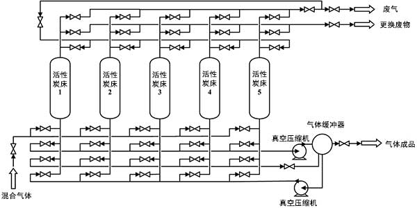圖1:活性炭真空變壓吸附過(guò)程的示意流程圖。