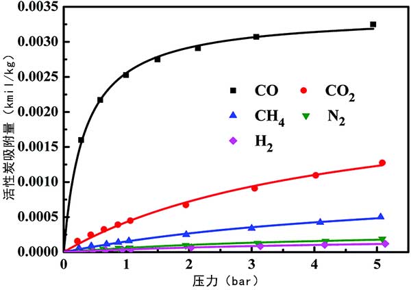 活性炭對(duì)CO,CO 2,CH 4,N 2和H 2的吸附等溫線(xiàn)
