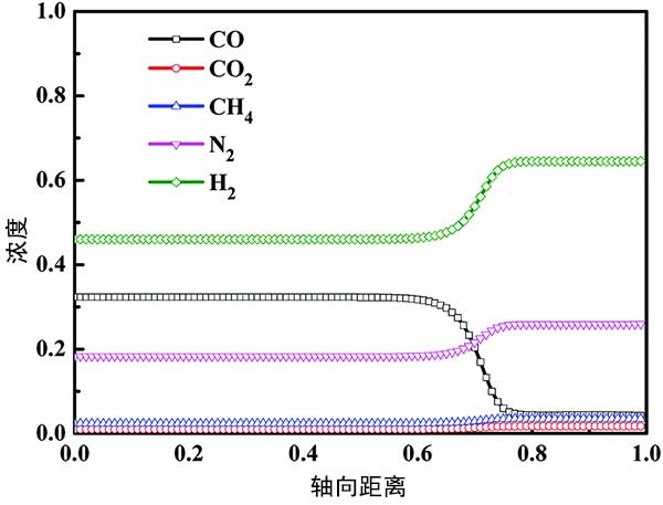 活性炭吸附步驟后CO,CO 2,CH 4,N 2和H 2的軸向濃度分布在圖4標(biāo)記。可以看出,活性炭吸附步驟后,Z/H=0.00-0.60的吸附床達(dá)到飽和,CO,CO 2,CH 4,N 2和H 2的濃度不隨軸向距離變化床的一部分,與進(jìn)料氣中各組分的濃度一致。并且在Z/H的不飽和吸附床中>0.60,隨著床軸距的增加,CO濃度逐漸降低,其他成分濃度逐漸增加。最后,所有組分的濃度趨于穩(wěn)定。