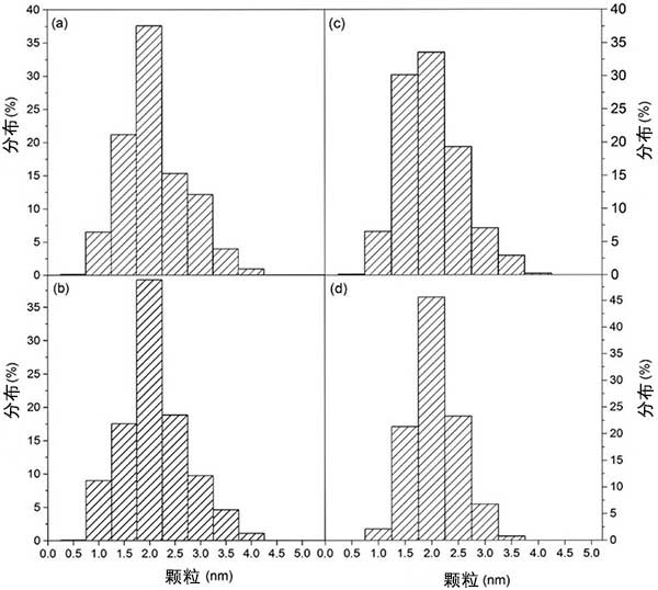 圖2:活性炭和使用過(guò)的活性炭催化劑的鉑粒度。