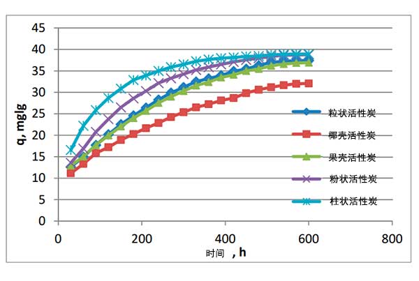 對(duì)用于水處理的五種市售活性炭進(jìn)行氯霉素吸附試驗(yàn)。這些包括粒狀活性炭,椰殼活性炭,果殼活性炭,粉狀活性炭與柱狀活性炭(原材料各不一樣)。