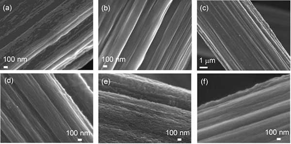 幾種活性炭的FESEM圖像顯示在圖1中。涂有錫酞菁的活性炭的表面形態(tài)與沒(méi)有涂層的活性炭相似�;钚蕴吭�550℃下熱氧化后,在表面上產(chǎn)生氧化錫納米顆粒。另外,活性炭上存在許多淺細(xì)長(zhǎng)凹痕,這是通過(guò)精細(xì)表面蝕刻產(chǎn)生的。雖然僅通過(guò)FESEM觀察很難清楚地證明這種表面結(jié)構(gòu)變化,但拉曼光譜和電化學(xué)測(cè)量可以顯示出如下所述的明顯差異。表面蝕刻的程度取決于熱氧化的溫度。隨著溫度的升高,表面變粗糙。應(yīng)注意,在每個(gè)處理溫度下在活性炭表面上均勻地獲得粗糙化。