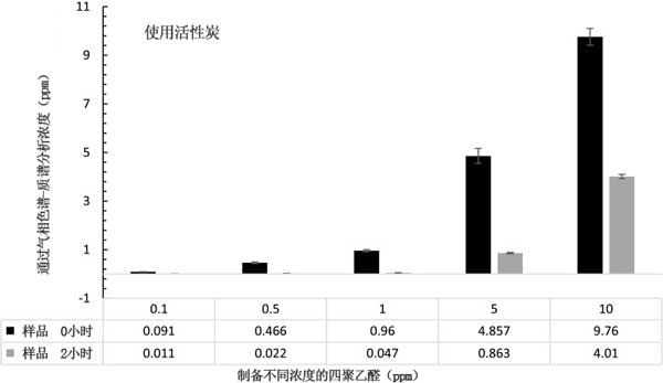 在活性炭,碳摻雜的幾種二氧化鈦納米催化劑的研究中,活性炭是最有效的降解四聚乙醛的材料。在0.1、0.5、1、5和10ppm的研究濃度范圍內(nèi),以及2小時(shí)的反應(yīng)時(shí)間內(nèi),負(fù)載濃度為0.2g L-1的活性炭在低濃度下顯示出比高濃度更顯著的乙醛去除。增加初始的聚乙醛溶液濃度不會(huì)導(dǎo)致更有效的去除乙醛。隨著制備的聚乙醛溶液初始濃度的增加,活性炭對(duì)叔醛的去除率降低。使用活性炭通過吸附有利于除去聚乙醛,也可以在短時(shí)間去除甲醛。與活性炭相比,碳摻雜的二氧化鈦納米催化劑在研究的濃度范圍,催化劑負(fù)載濃度,光強(qiáng)度和反應(yīng)時(shí)間內(nèi)通過光催化去除溶液中的聚乙醛無效。