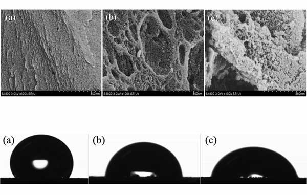 圖1:掃描電子顯微鏡圖像和水滴在活性炭上形成的接觸角。