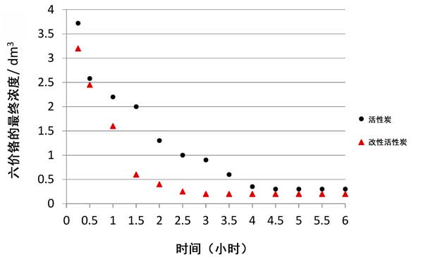 從獲得的測試結(jié)果可以得出結(jié)論,吸附時(shí)間對(duì)特定碳的鉻(VI)去除效率具有顯著影響。鉻酸根離子相對(duì)于活性炭的最大還原發(fā)生在4.5小時(shí)后。在硝酸改性活性炭上去除鉻的速率更高,并且在2.5 h后發(fā)生了吸附平衡時(shí)間。然后進(jìn)行穩(wěn)定化處理,并進(jìn)行進(jìn)一步測試(確定等溫線),發(fā)現(xiàn)該接觸時(shí)間為不同的活性炭通常不超過6小時(shí)。