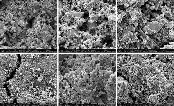 可以通過掃描電子顯微鏡,通過分析每個(gè)測試開始和結(jié)束時(shí)材料的圖像來進(jìn)一步研究此方面。注意孔徑。測試后(圖4的底部)不再存在新鮮材料大量孔隙的大部分(圖4的頂部)。在測試結(jié)束時(shí),萘碳化產(chǎn)生的碳沉積物主要以小晶粒的形式存在于活性炭表面,通常集中在表面的特定區(qū)域周圍,可能對應(yīng)于活性部位。在煤或椰子殼上的活性炭上已經(jīng)觀察到類似的碳粒和細(xì)絲,并且在這些情況下,它們的形成與鐵和堿物種的催化活性有關(guān)。在活性炭球團(tuán)的SEM圖像中,也可以區(qū)分深裂縫,這可能是熱應(yīng)力的結(jié)果。