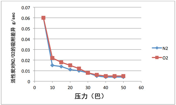 圖3:活性炭低溫吸附N2和O2的模擬測試。