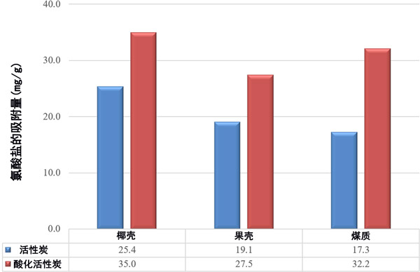 圖2:正常和酸化活性炭之間吸附氯酸鹽的比較。