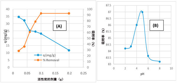 我們研究了不同參數(shù)對活性炭去除乙酰胺的影響,例如吸附劑的劑量,pH,乙酰胺的初始濃度和接觸時間。吸附劑的用量是吸附過程中的重要參數(shù),因?yàn)樗鼪Q定了系統(tǒng)中吸附劑與被吸附物的平衡以及給定濃度下吸附劑的容量。吸附劑劑量對由活性炭去除啶蟲脒的效果在不同的吸附劑的劑量從0.02-0.2克/100毫升變化進(jìn)行了研究,如圖1。隨著活性炭吸附劑劑量的增加,對乙酰胺的去除百分率從27.8%增加到92.5%。這可以歸因于活動站點(diǎn)數(shù)量的增加。在較高的吸附劑量下,由于聚集體的形成,吸附位點(diǎn)的使用不完全。與去除百分率相反,隨著吸附劑劑量的增加,活性炭對乙酰胺的吸附能力下降了一些。注意到在0.1g的吸附劑劑量之后,吸附效率沒有顯示出顯著的增加,這表明了吸附位點(diǎn)的飽和。對于通過活性炭去除乙酰胺實(shí)驗(yàn)而言,0.1 g的吸附劑量似乎是合適的。