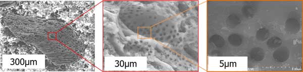 為實驗準備了兩種類型的樣品,無裂縫標本和帶裂縫的標本。樣品的尺寸為20×20×4mm。使用丙烯酸板形成裂縫。使用椰殼制備的載銀活性炭(活性炭+0.1%AgCl),并使用氯化銀實現(xiàn)銀的浸漬。盡管粉末粒度具有寬的尺寸分布,但250-500μm的顆粒占約90%的顆粒。圖2顯示了活性炭表面結構的掃描電子顯微鏡(SEM)圖像:發(fā)現(xiàn)其表面是多孔的,并且在大孔內部觀察到幾個中孔。在實驗期間使用恒電位儀在兩種條件下測量樣品的開路電位:與活性炭接觸和不接觸活性炭。在實驗之后,使用光學顯微鏡觀察樣品表面。測量在開路條件下進行近40小時(在中性溶液中)和24小時(在堿性溶液中)。